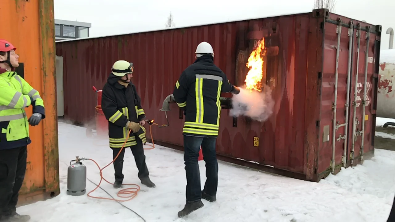 Der Umgang mit Gefahrensituationen ist für das Arbeiten in und an Energieanlagen Voraussetzung. Mit erfahrenen Feuerwehrmännern übten wir verschiedene Brandlöschungen sowie überlebensnotwendige Evakuierungsmaßnahmen.
